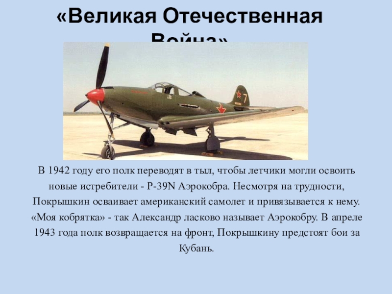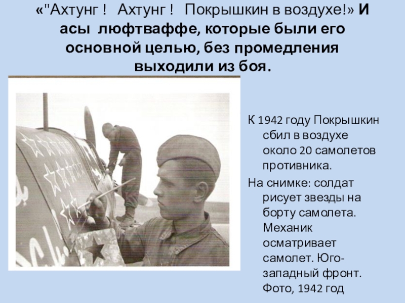 К 1942 году Покрышкин сбил в воздухе около 20 самолетов противника.