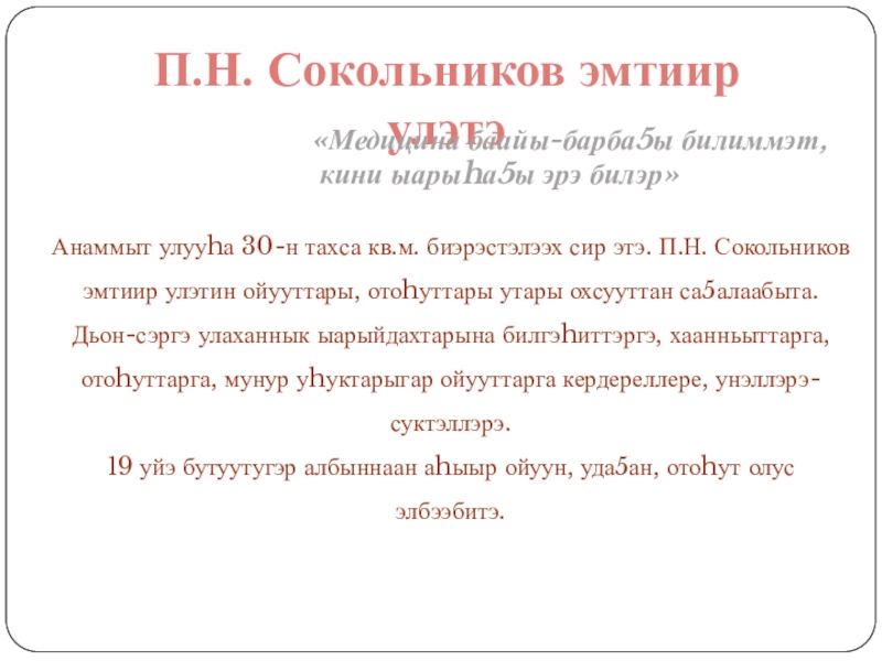 «Медицина баайы-барба5ы билиммэт,