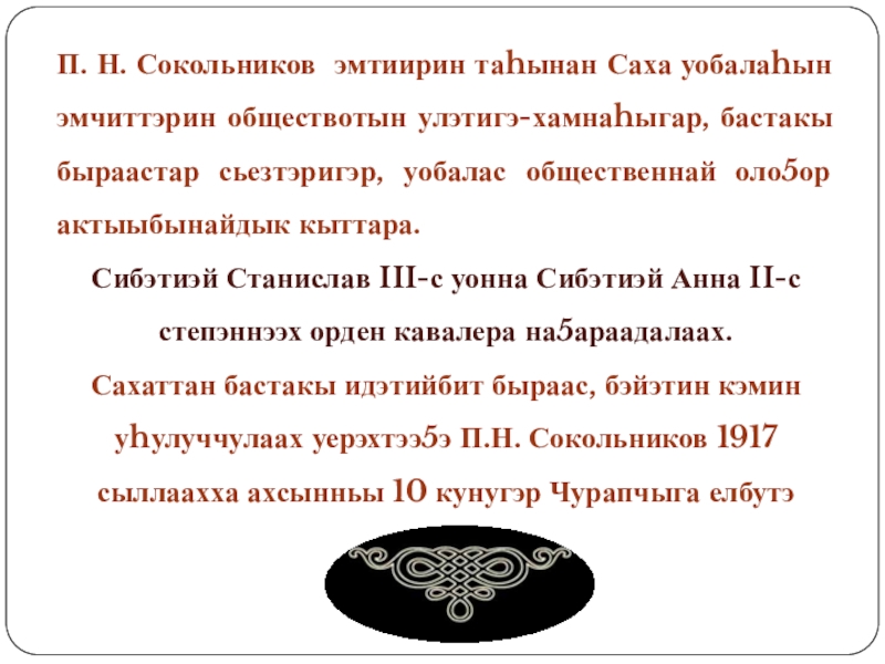 норуоттарын культуратын уруоктарыгар туттарга аналлаах мультимедийнай презентация.