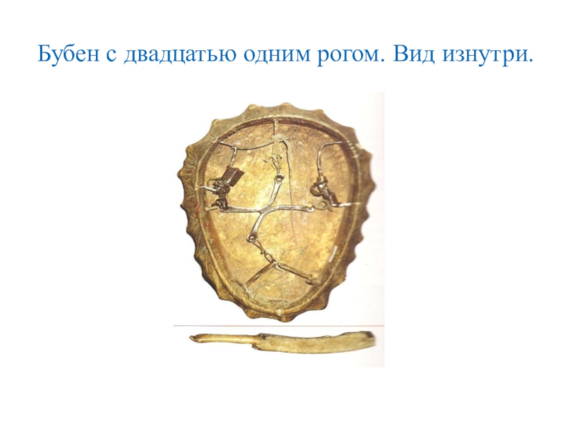 Слайд 13Бубен с двадцатью одним рогом. Вид изнутри.
