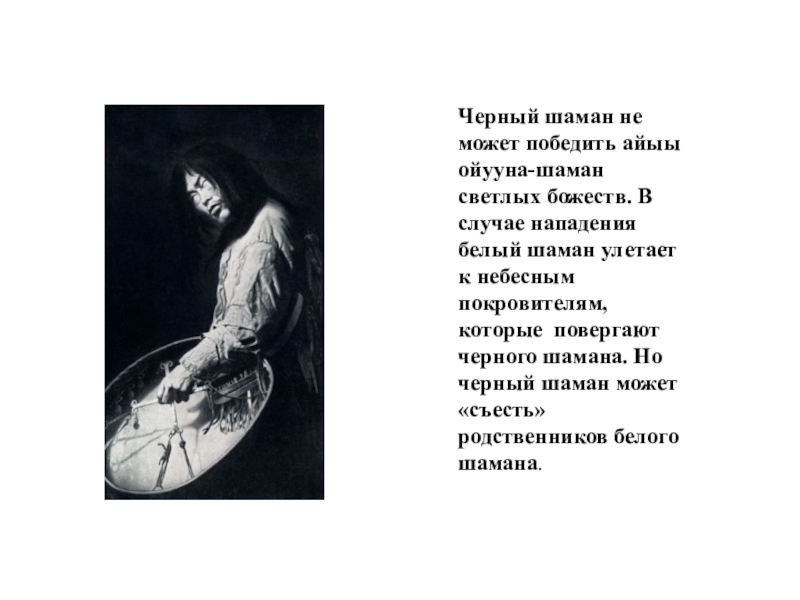 Слайд 7Черный шаман не может победить айыы ойууна-шаман светлых божеств. В случае