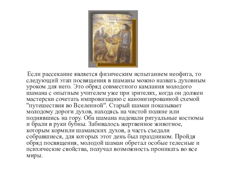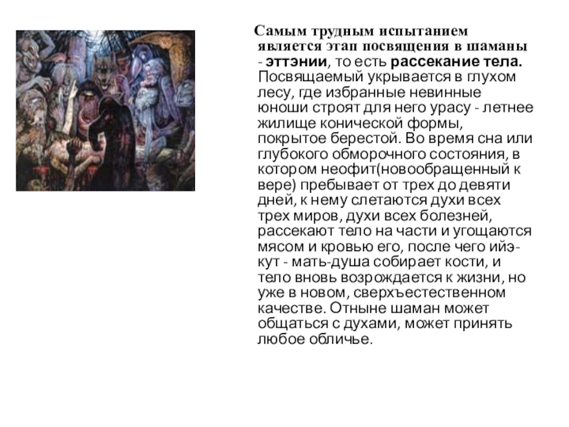 Слайд 10 Самым трудным испытанием является этап посвящения в шаманы