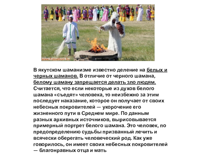 Слайд 6В якутском шаманизме известно деление на белых и черных шаманов. В
