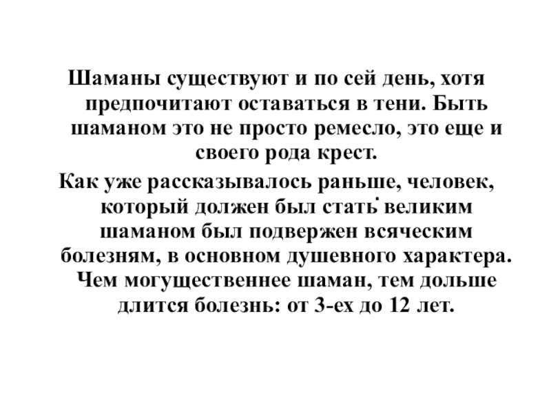 Быть шаманом это не просто ремесло, это еще и своего рода крест.