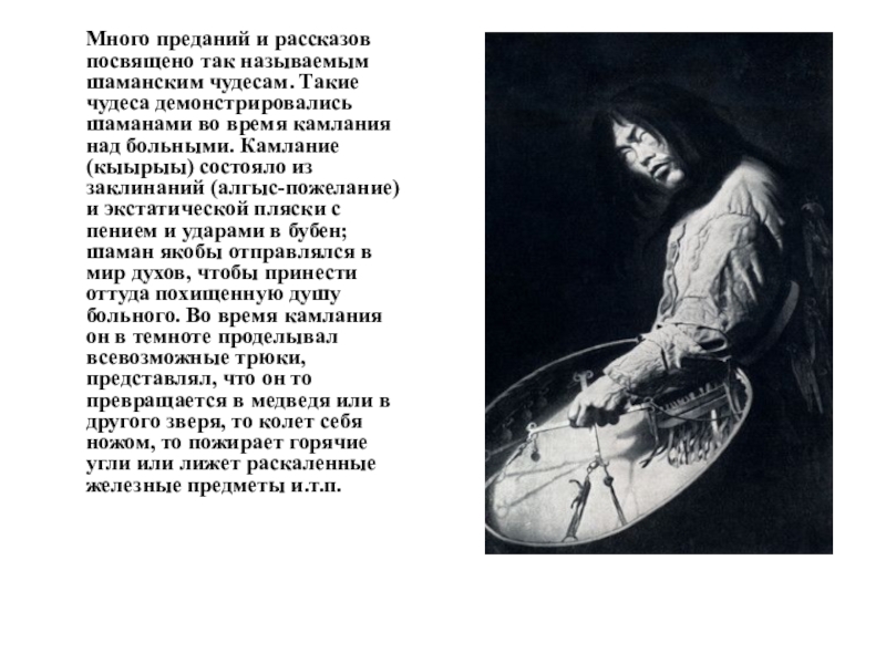 Слайд 5 Много преданий и рассказов посвящено так называемым шаманским