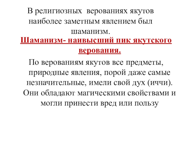 В религиозных верованиях якутов наиболее заметным явлением был шаманизм.