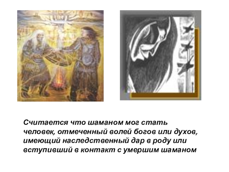 Слайд 3Считается что шаманом мог стать человек, отмеченный волей богов или духов,