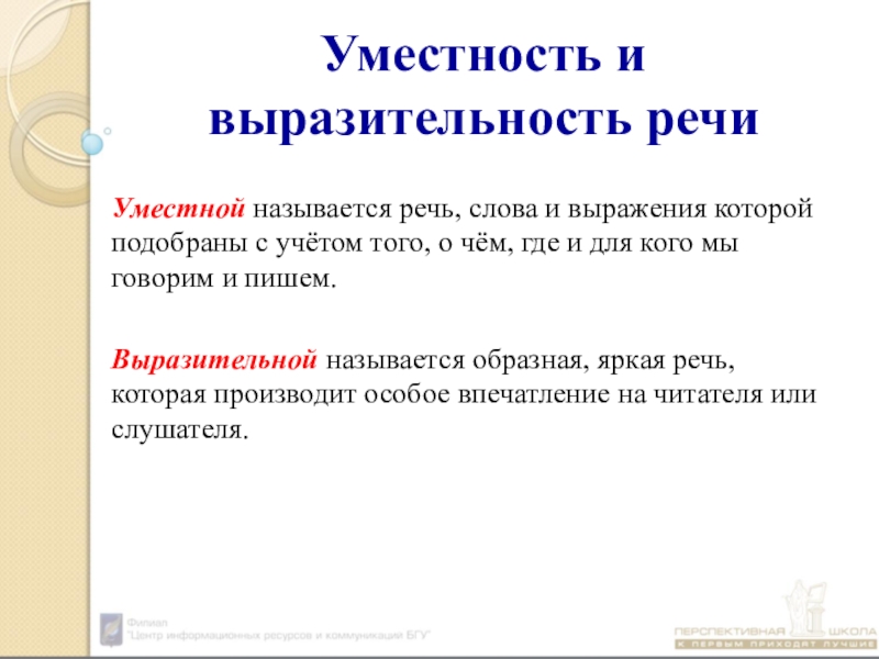 Слайд 7Уместность и выразительность речи
