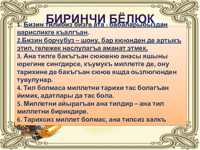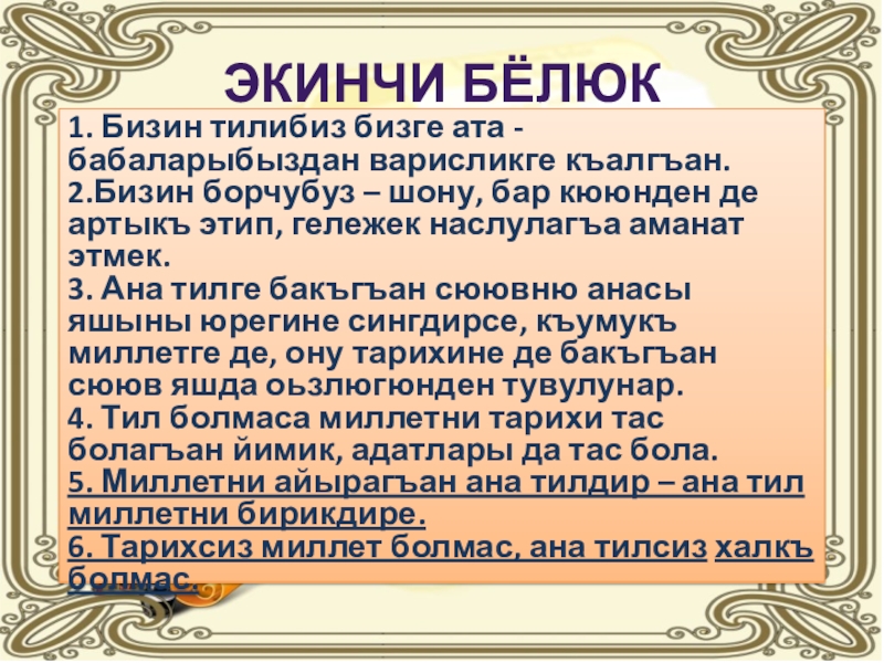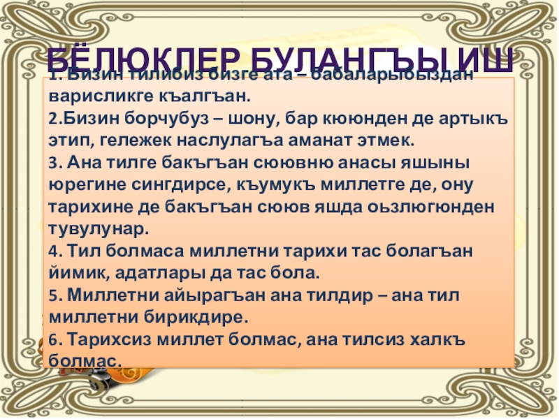 3. Къумукъ халкъыма къара, тилин унутуп бара.