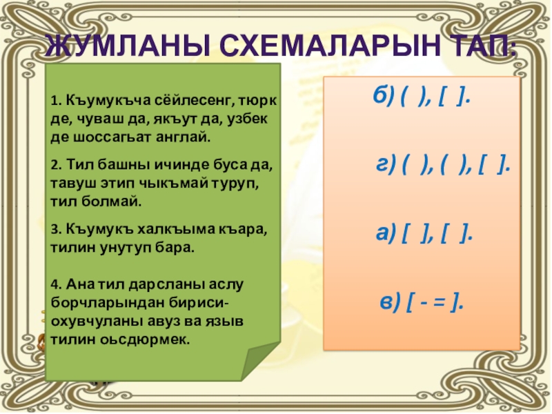 2. Тил башны ичинде буса да, тавуш этип чыкъмай туруп,