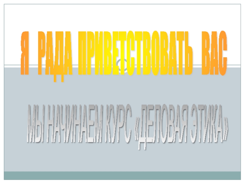 Я  РАДА ПРИВЕТСТВОВАТЬ  ВАС МЫ НАЧИНАЕМ КУРС «ДЕЛОВАЯ ЭТИКА»