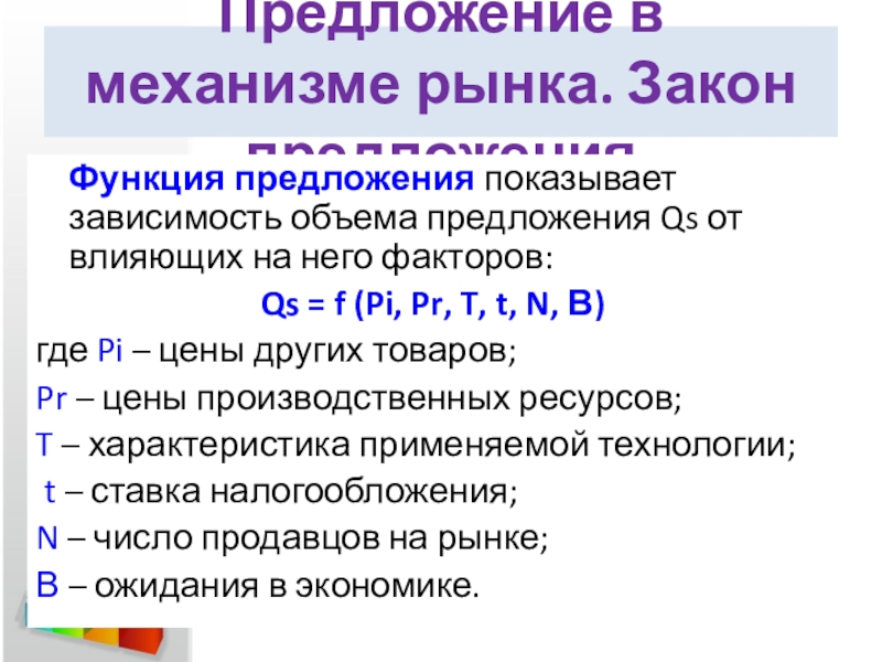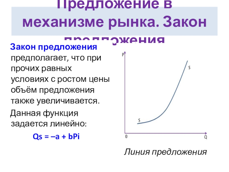 Слайд 17Предложение в механизме рынка. Закон предложения