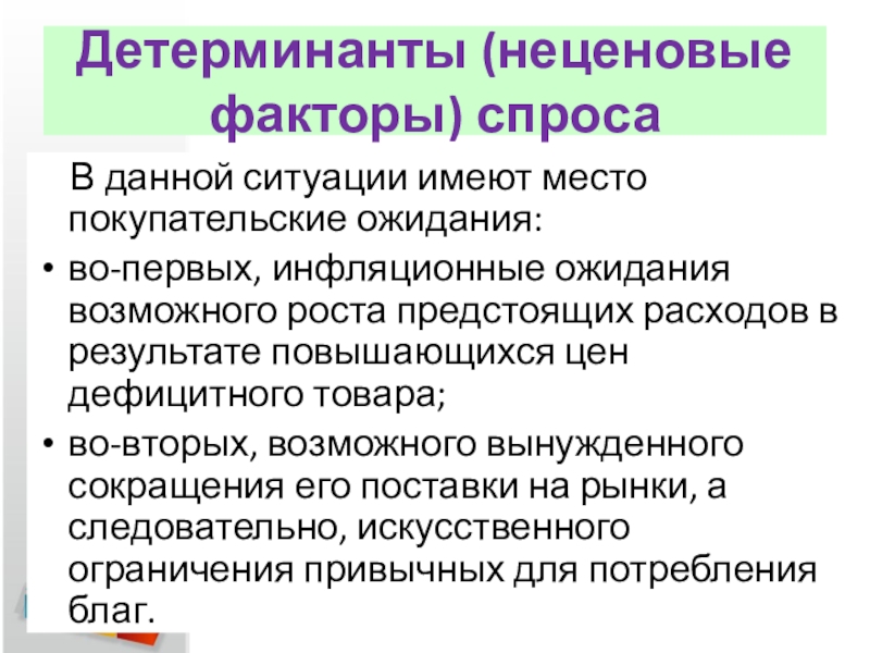 Слайд 5Детерминанты (неценовые факторы) спроса