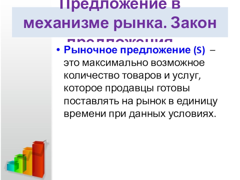Слайд 20Предложение в механизме рынка. Закон предложения