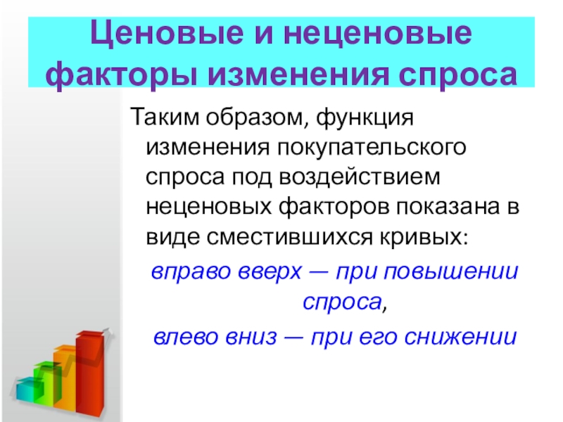 Слайд 12Ценовые и неценовые факторы изменения спроса