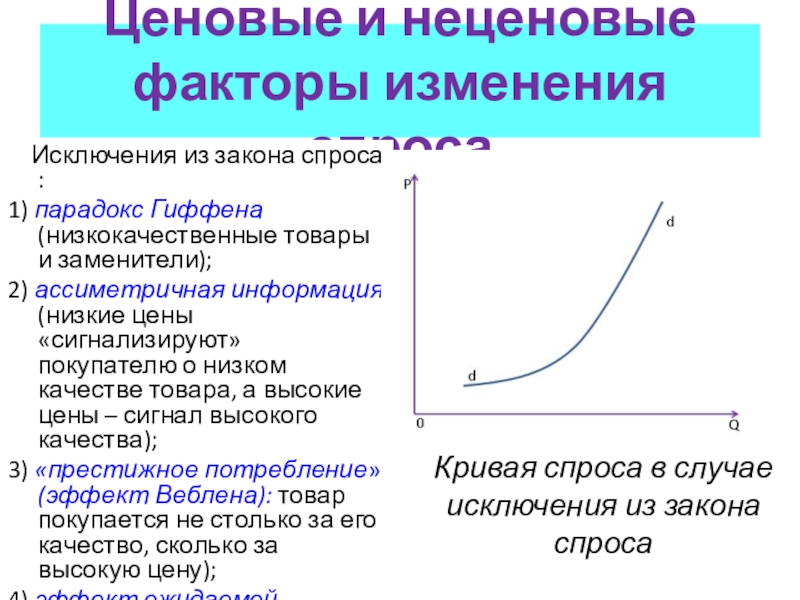 Слайд 16Ценовые и неценовые факторы изменения спроса