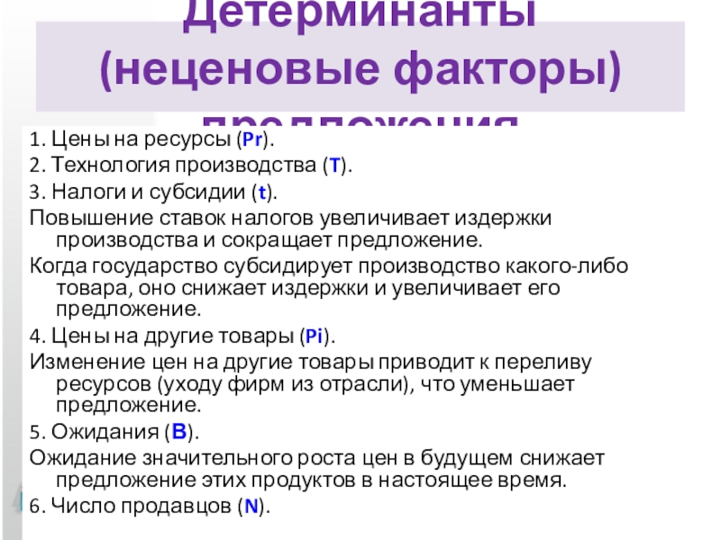Слайд 22Детерминанты (неценовые факторы) предложения