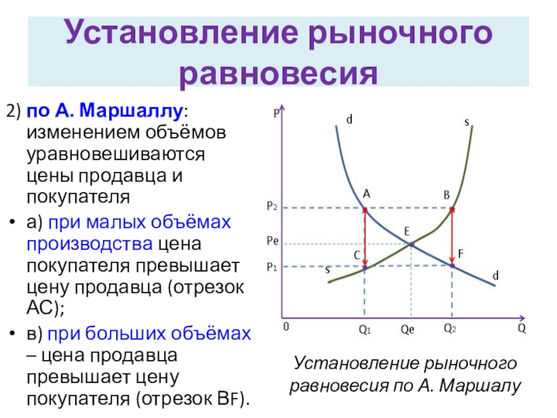 2) по А. Маршаллу: изменением объёмов уравновешиваются цены продавца
