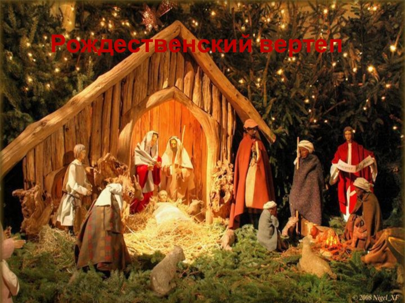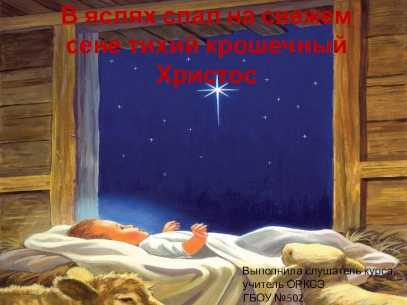 Слайд 1В яслях спал на свежем сене тихий крошечный Христос