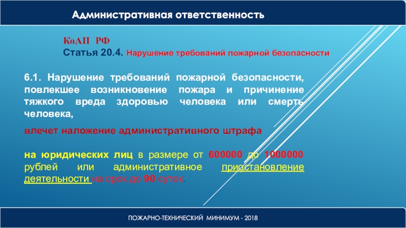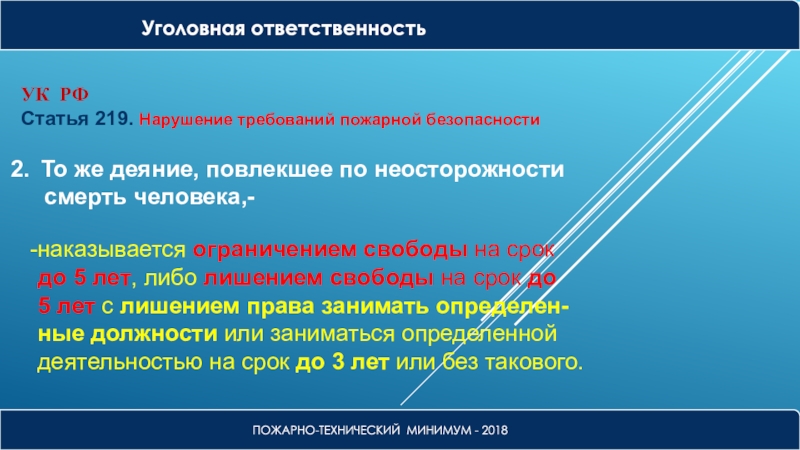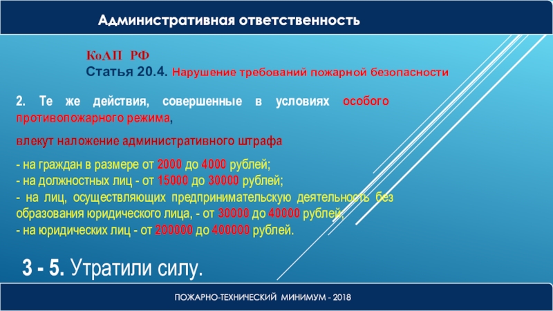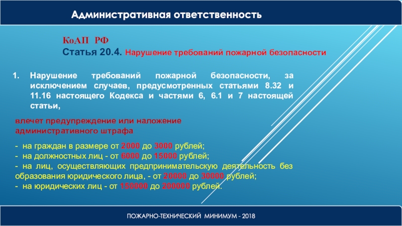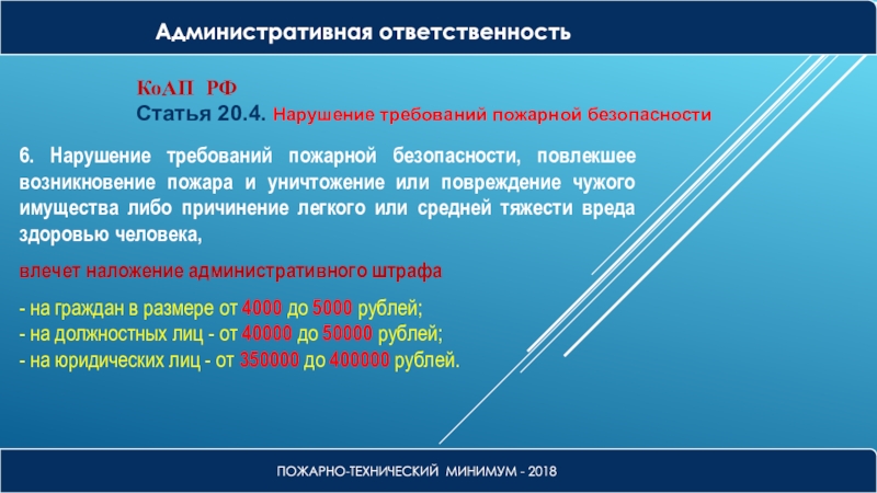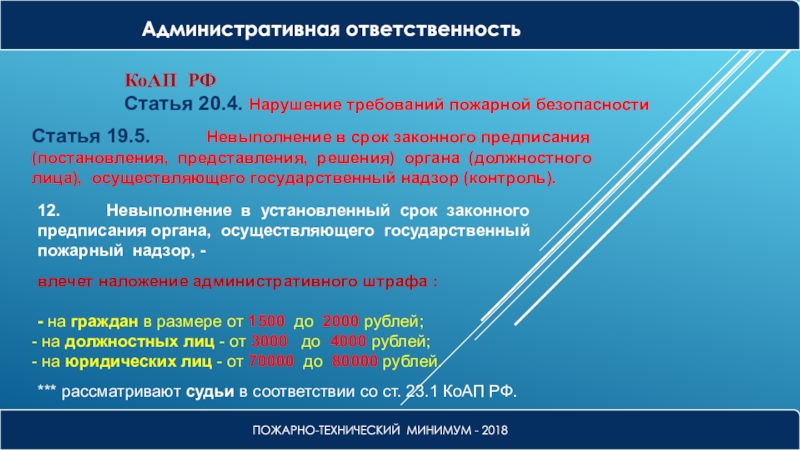 12. Невыполнение в установленный срок законного предписания органа, осуществляющего государственный пожарный надзор, -