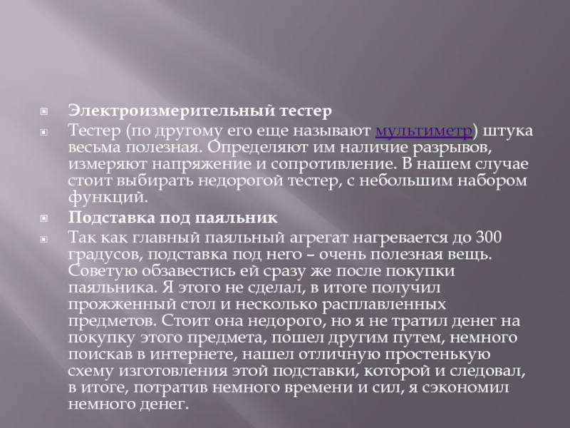 Паяльник Паяльник – главный прибор, без которого в пайке никуда. Выбирать паяльник нужно серьезно и не спеша.