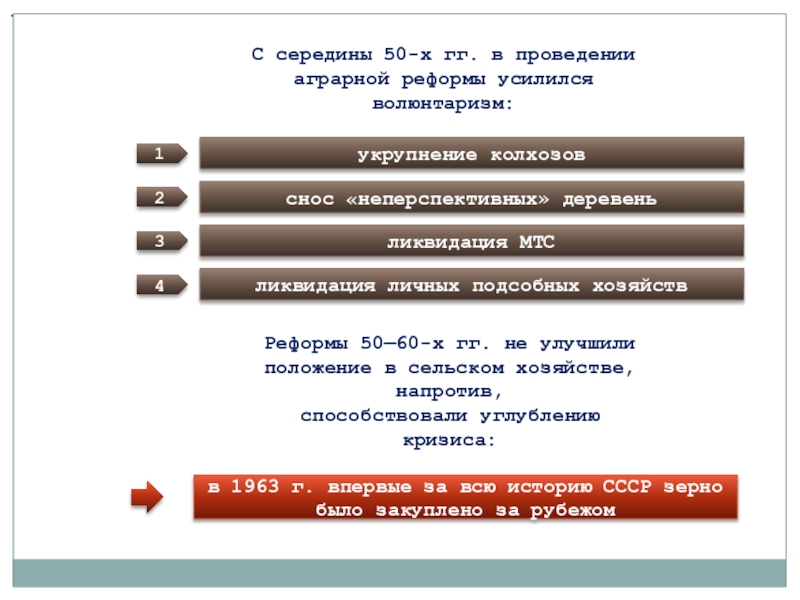 Реформы 50—60-х гг. не улучшили положение в сельском хозяйстве, напротив,