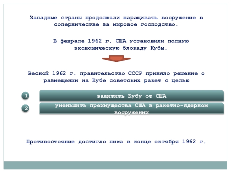 Весной 1962 г. правительство СССР приняло решение о размещении на Кубе советских ракет с целью