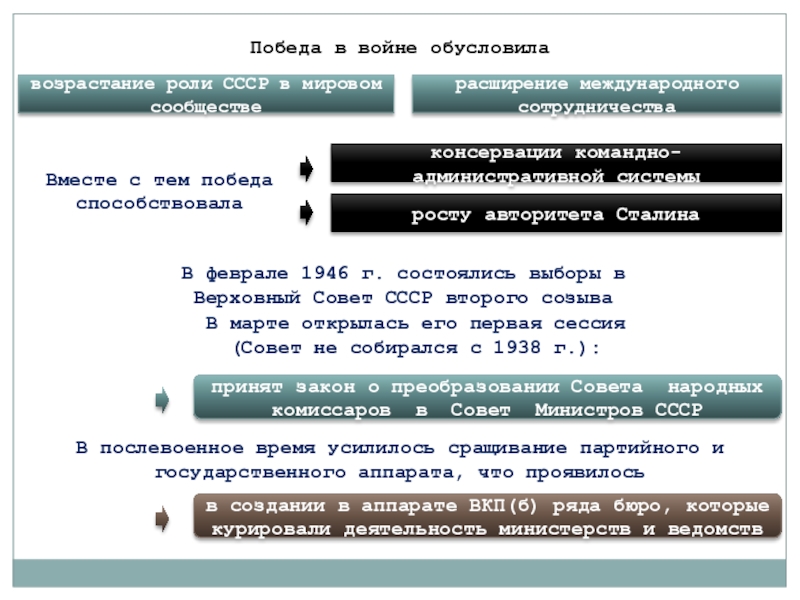 В послевоенное время усилилось сращивание партийного и государственного аппарата, что проявилось