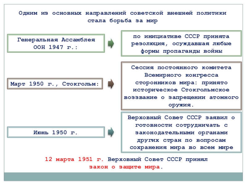 Одним из основных направлений советской внешней политики стала борьба за мир