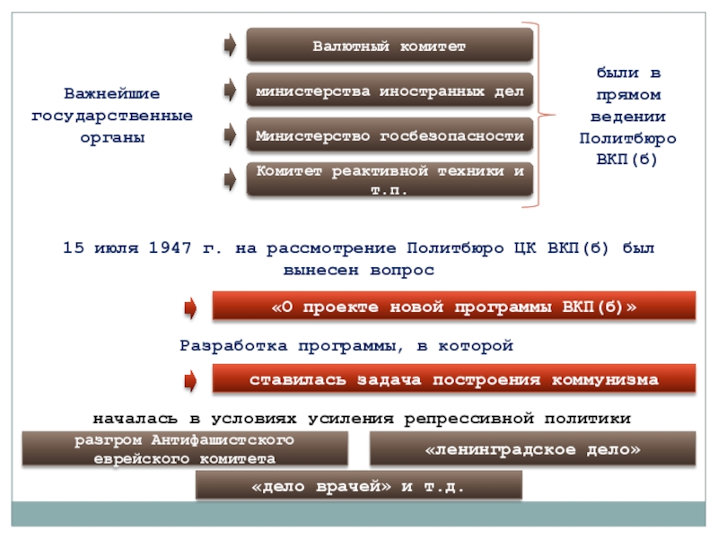 15 июля 1947 г. на рассмотрение Политбюро ЦК ВКП(б) был вынесен вопрос