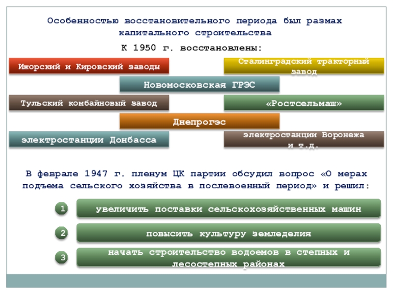 В феврале 1947 г. пленум ЦК партии обсудил вопрос «О мерах подъема сельского хозяйства в послевоенный период» и решил: