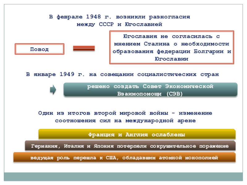 Один из итогов второй мировой войны - изменение соотношения сил на международной арене