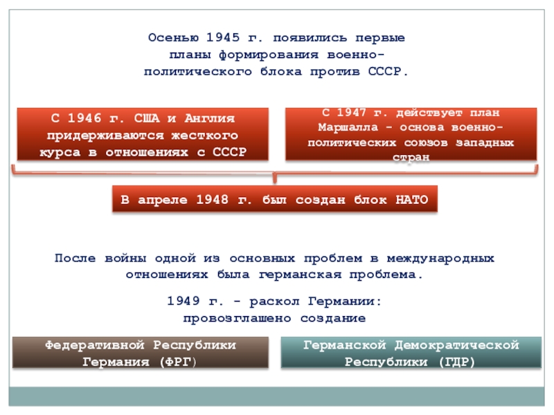 С 1947 г. действует план Маршалла - основа военно-политических союзов западных стран
