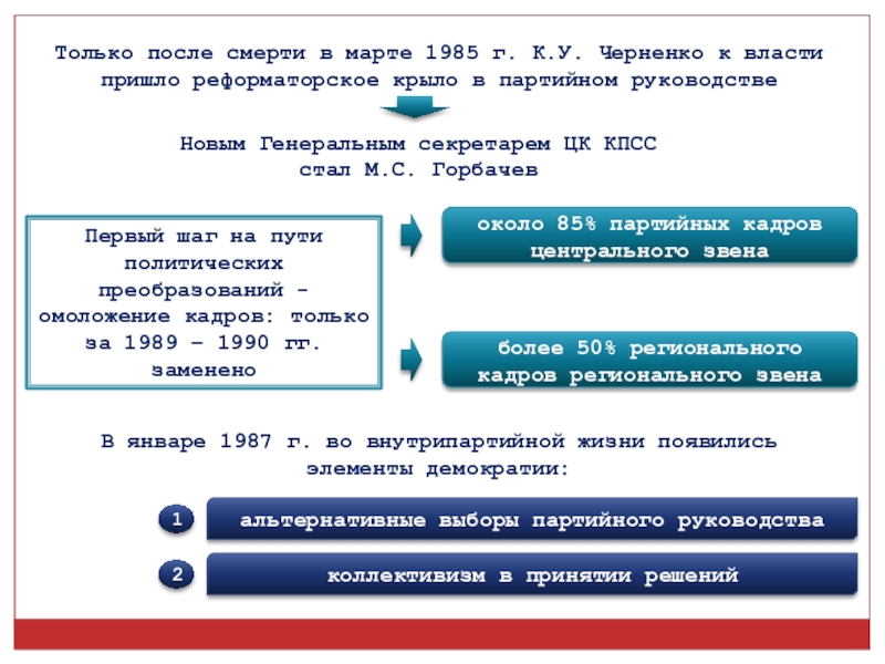 Первый шаг на пути политических преобразований - омоложение кадров: только за 1989 – 1990 гг. заменено