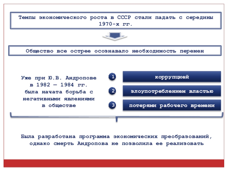 Была разработана программа экономических преобразований, однако смерть Андропова не позволила ее реализовать