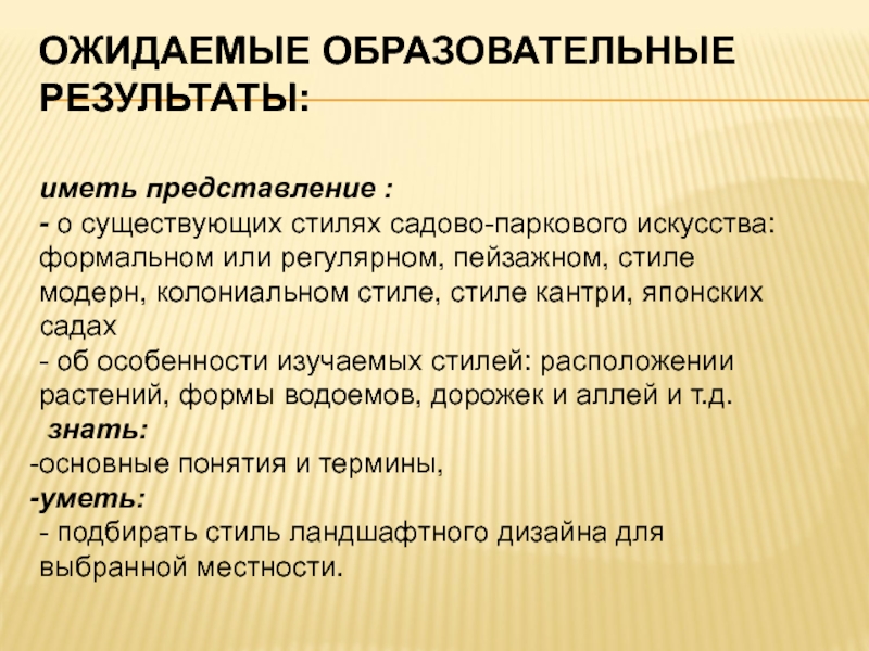 или регулярном, пейзажном, стиле модерн, колониальном стиле, стиле кантри, японских садах
