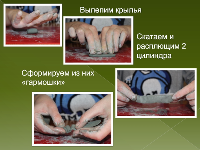 Вылепим крылья Скатаем и расплющим 2 цилиндраСформируем из них «гармошки»