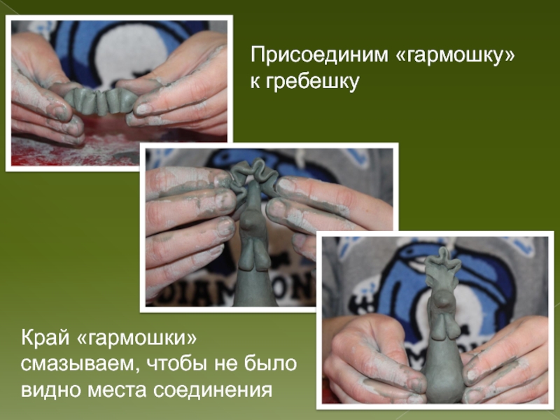 Присоединим «гармошку» к гребешкуКрай «гармошки» смазываем, чтобы не было видно места соединения