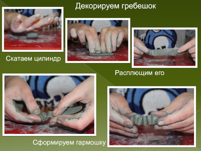 Декорируем гребешок Скатаем цилиндр Расплющим егоСформируем гармошку