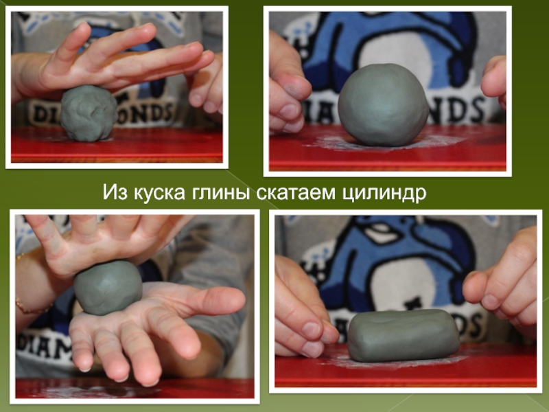 Слайд 12Из двух кусочков глины скатываем шарики, раскатываем их по форме капельки