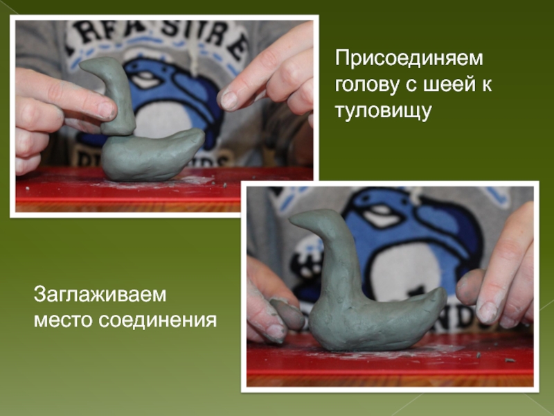 Присоединяем голову с шеей к туловищуЗаглаживаем место соединения