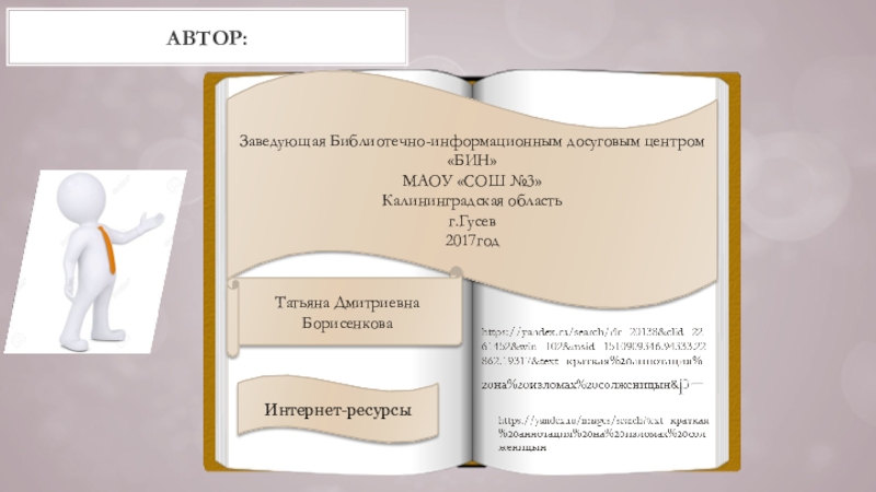 Это сайт презентаций, где можно хранить и обмениваться своими презентациями, докладами, проектами, шаблонами в формате PowerPoint с другими пользователями. Мы помогаем школьникам, студентам, учителям, преподавателям хранить и обмениваться учебными материалами.