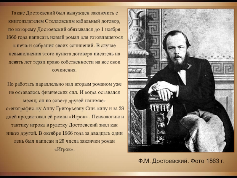 Слайд 10Ф.М. Достоевский. Фото 1863 г.
