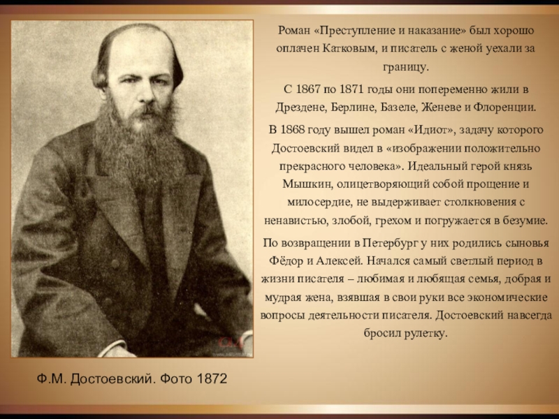 Слайд 12Ф.М. Достоевский. Фото 1872