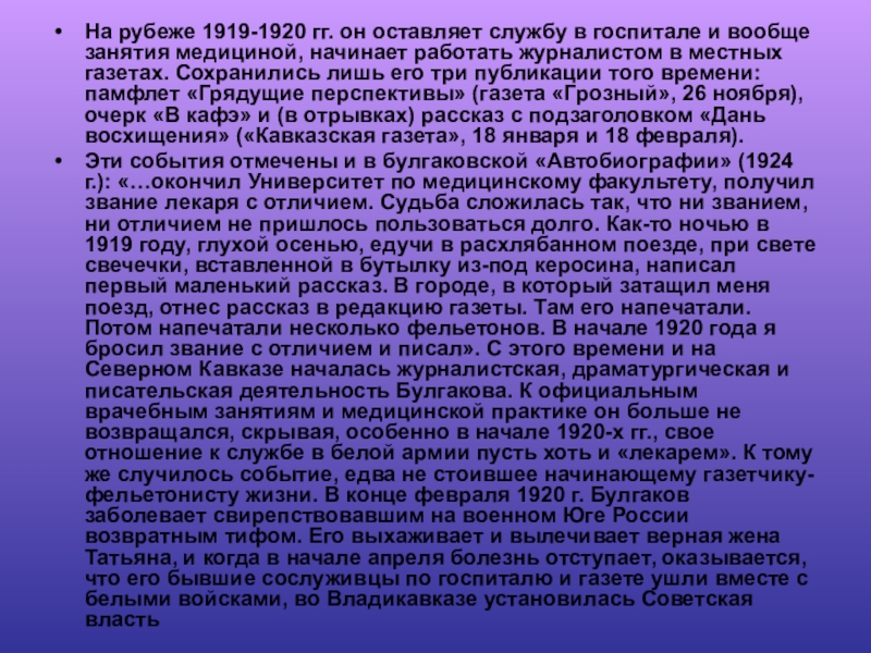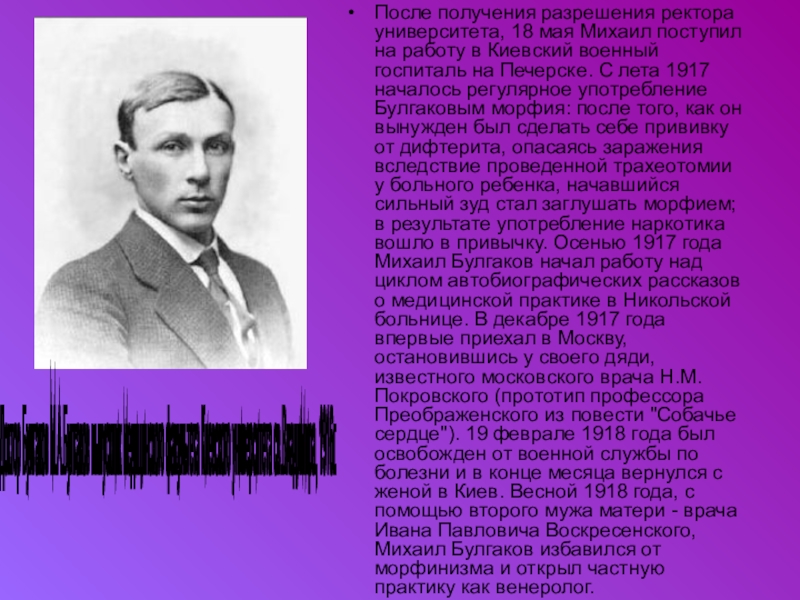 Доктор Булгаков М.А.Булгаков выпускник медицинского факультета Киевского университета св.Владимира, 1916г.
