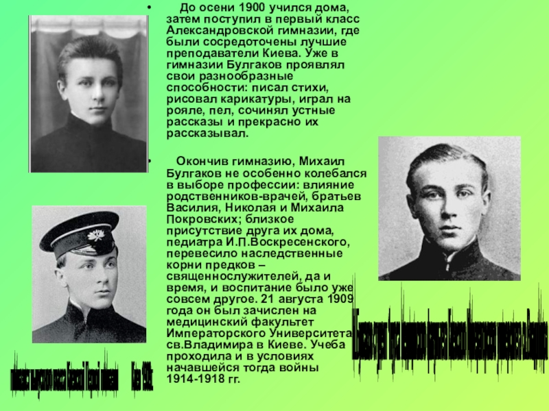 М.Булгаков студент 1курса медицинского факультета Киевского Императорского университета св.Владимира