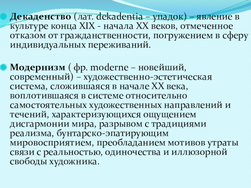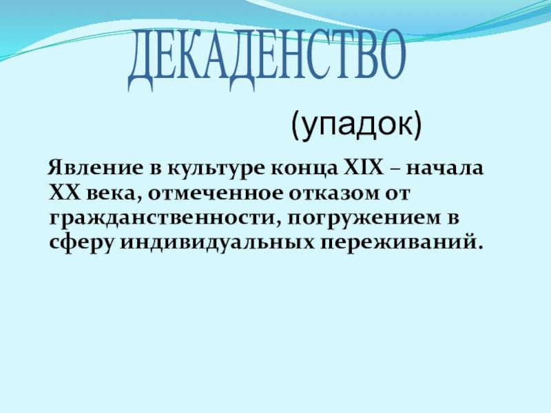 Явление в культуре конца ХIХ – начала ХХ века, отмеченное отказом от гражданственности, погружением в сферу индивидуальных переживаний.