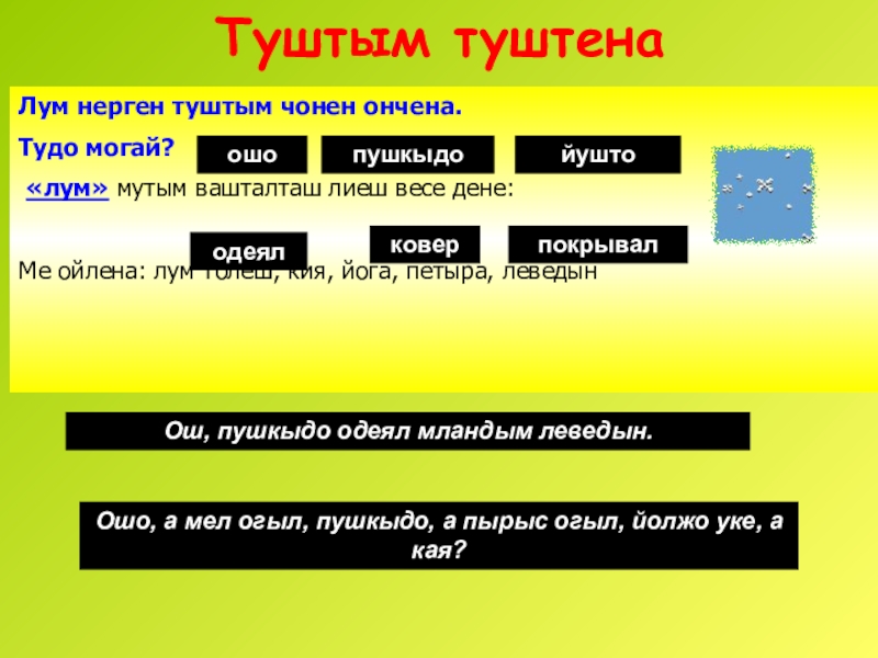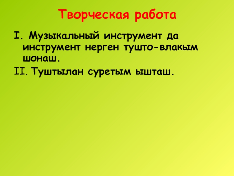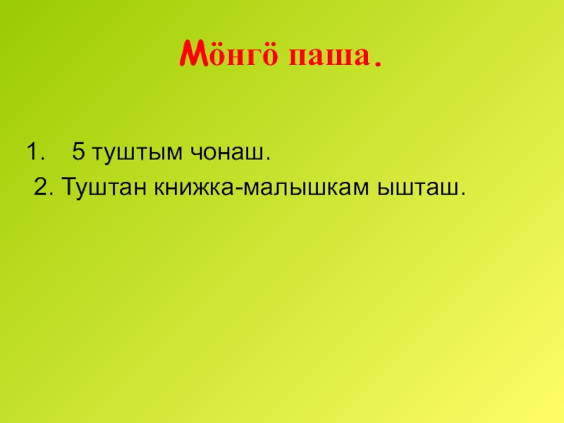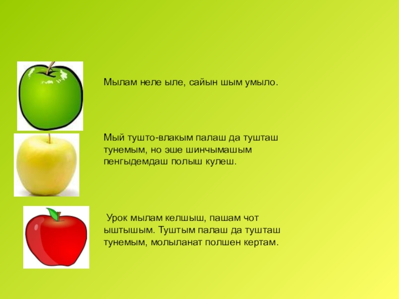 Урок мылам келшыш, пашам чот ыштышым. Туштым палаш да тушташ тунемым, молыланат полшен кертам.