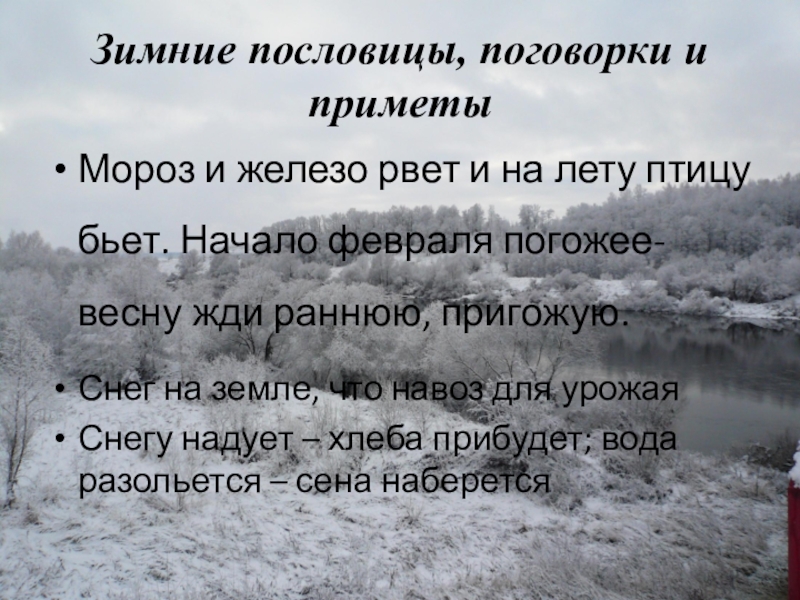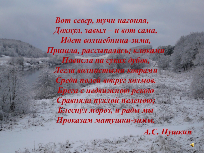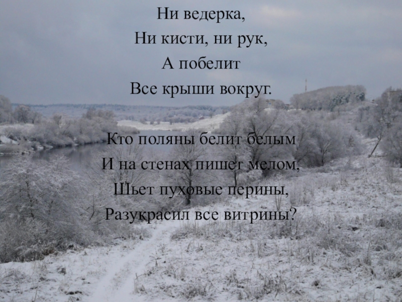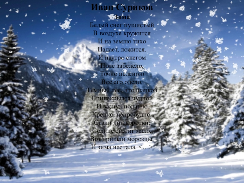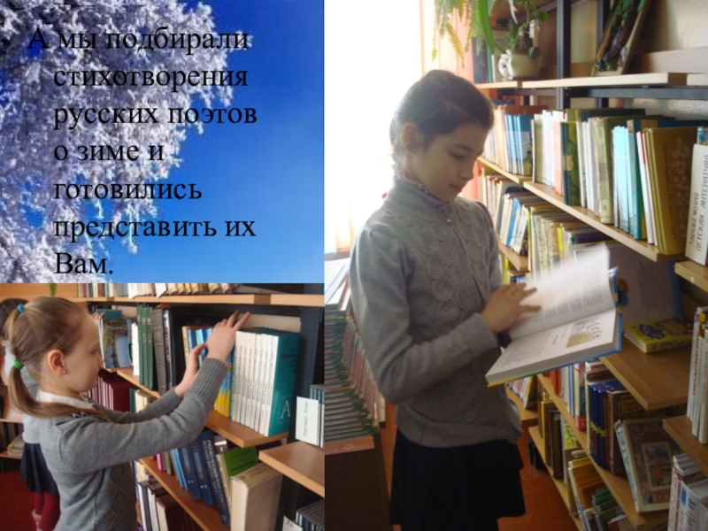 Слайд 10А мы подбирали стихотворения русских поэтов о зиме и готовились представить