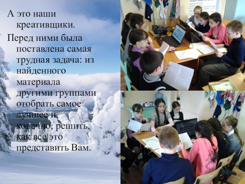 найденного материала другими группами отобрать самое лучшее и, конечно, решить, как все это представить Вам.